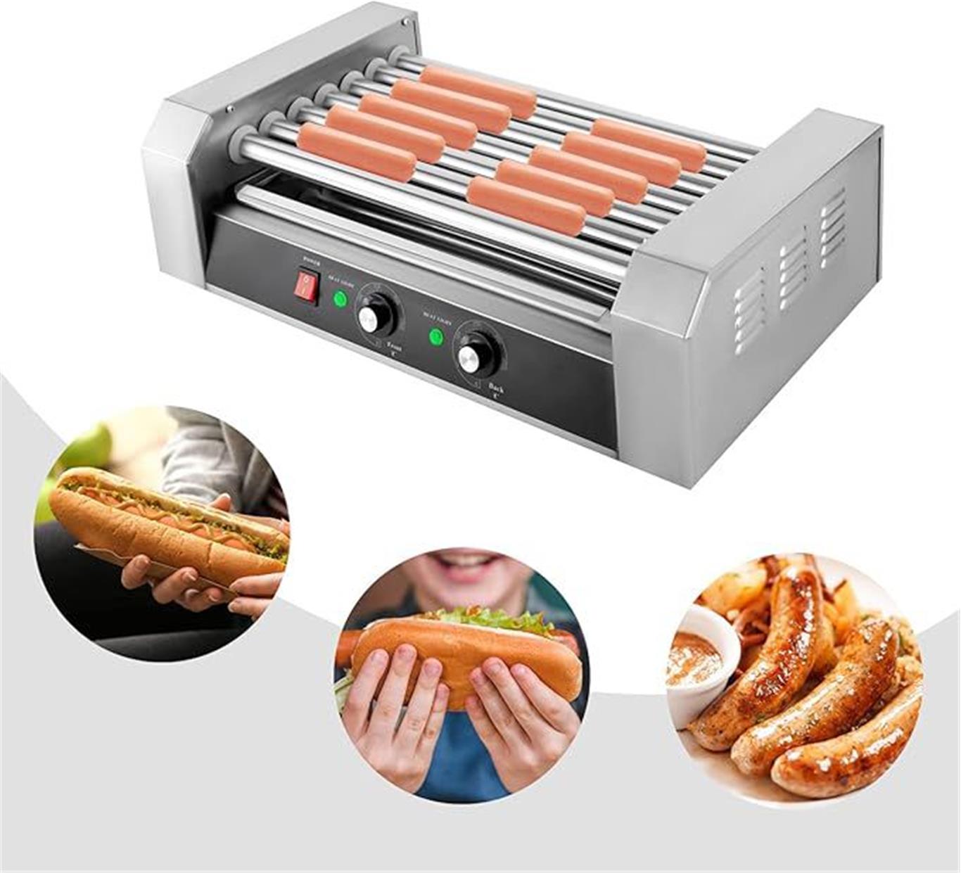 Key Features & Benefits High-Capacity Cooking – Serve more hotdogs simultaneously during rush hours Automated Rotating System – Ensures consistent cooking and warming Wide Temperature Range – Perfect for hotdogs, sausages, and specialty items Heavy-Duty Stainless Steel Build – Built to last in demanding commercial settings Eye-Catching Display – Increases visibility and impulse buying Time & Labor Saving – Faster service with minimal manual effort Product Specifications Model: 11-Barrel High-Capacity Material: Stainless Steel & Glass Size: 23" (L) × 19.5" (W) × 17" (H) Cooking Barrels: 11 rotating barrels Barrel Size: 17" length × 1" thickness Temperature Control: Dual front & back controls Temperature Range: 50°C – 250°C Power: 2.2 kW Voltage: 110V / 60Hz High-traffic restaurants, cinemas, stadiums, food courts, fairs, festivals, convenience stores, and large events requiring maximum output and reliability.