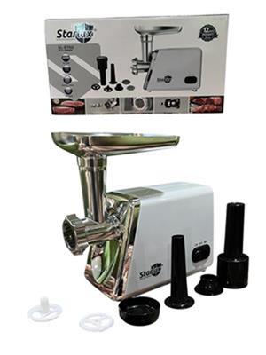 🔌 Starlux 2500Watts Heavy Duty Electric Meat Grinder – Description Points:- Powerful 2500W heavy-duty motor for fast and efficient grinding Grinds up to 2 lbs of meat per minute — perfect for large batches Includes 3 stainless steel grinding plates (coarse, medium & fine) for customized texture Comes with sausage and kubbe attachments for versatile meal prep Reverse function prevents clogging and ensures smooth operation Built-in overload protection for safe and reliable performance Durable, sturdy design ideal for home kitchens and small businesses Easy to assemble, operate, and clean for everyday convenience Perfect for making sausages, burgers, meatballs, pastelles, and more Helps you enjoy fresh, homemade mince without store-bought preservatives 🎁 FREE Silicone Rolling Pin included — limited-time combo offer Great for meal prep, bulk cooking, and festive food preparation SOLD BY EZBUY