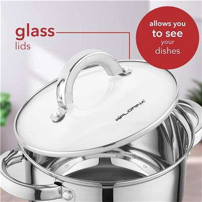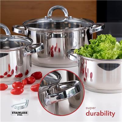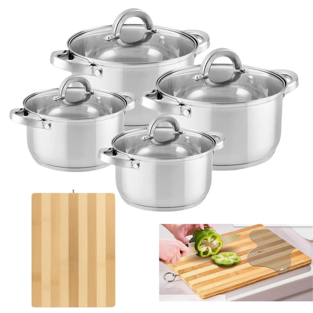 🍲 Includes 4 pot sizes: 16×10 cm (2L), 18×11 cm (2.7L), 20×12 cm (3.7L), 24×14 cm (6.3L) 🔥 Perfect variety for small meals, sides, and large family cooking ✨ Non-stick interior for smooth cooking and easy cleaning 🛡️ Premium stainless steel construction for long-lasting use 🔥 Even heat distribution for consistent cooking results 🪶 Lightweight design for comfortable everyday handling 🧊 Durable glass lids with steam vents for safe cooking control 📏 Built-in measurement markings for easy ingredient measuring 🔒 Heat-resistant handles for a safe and secure grip 🎁 FREE bamboo chopping board included with every purchase SOLD BY PRESTIGE HOME STORE